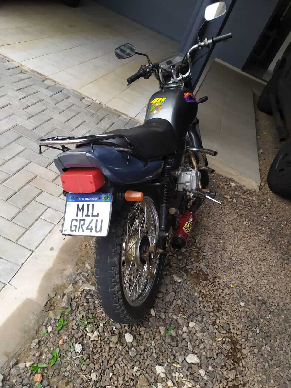 Na abordagem, eles flagraram ser uma motocicleta Honda/CG 125, com os sinais de identificação veicular adulterados, a placa afixada estava visivelmente adulterada, também não tendo a numeração do chassi, e o número do motor não foi possível identificar nos sistemas.