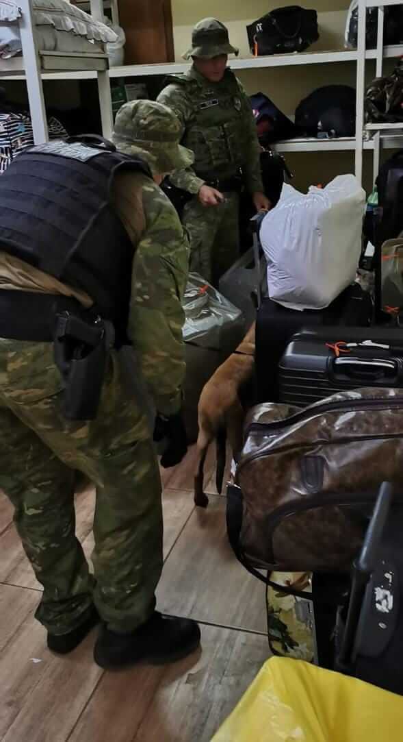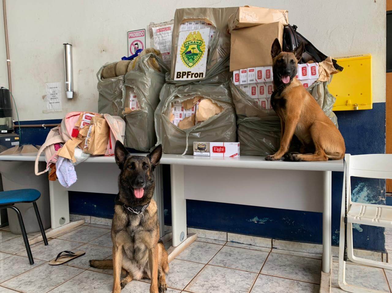 Em dado momento, os cães farejadores do canil do BPFRON indicaram para bagagens do guarda volumes da rodoviária. No local foram encontrados 260 pacotes de cigarros contrabandeados.
