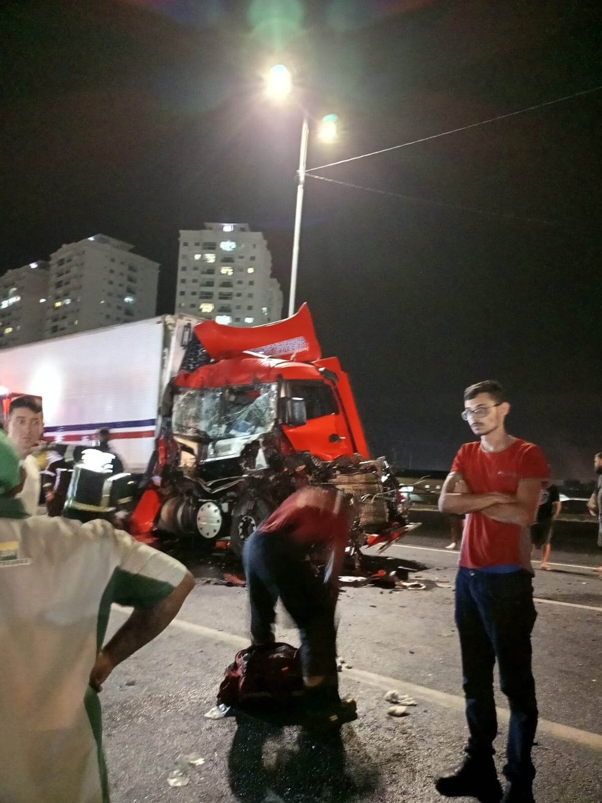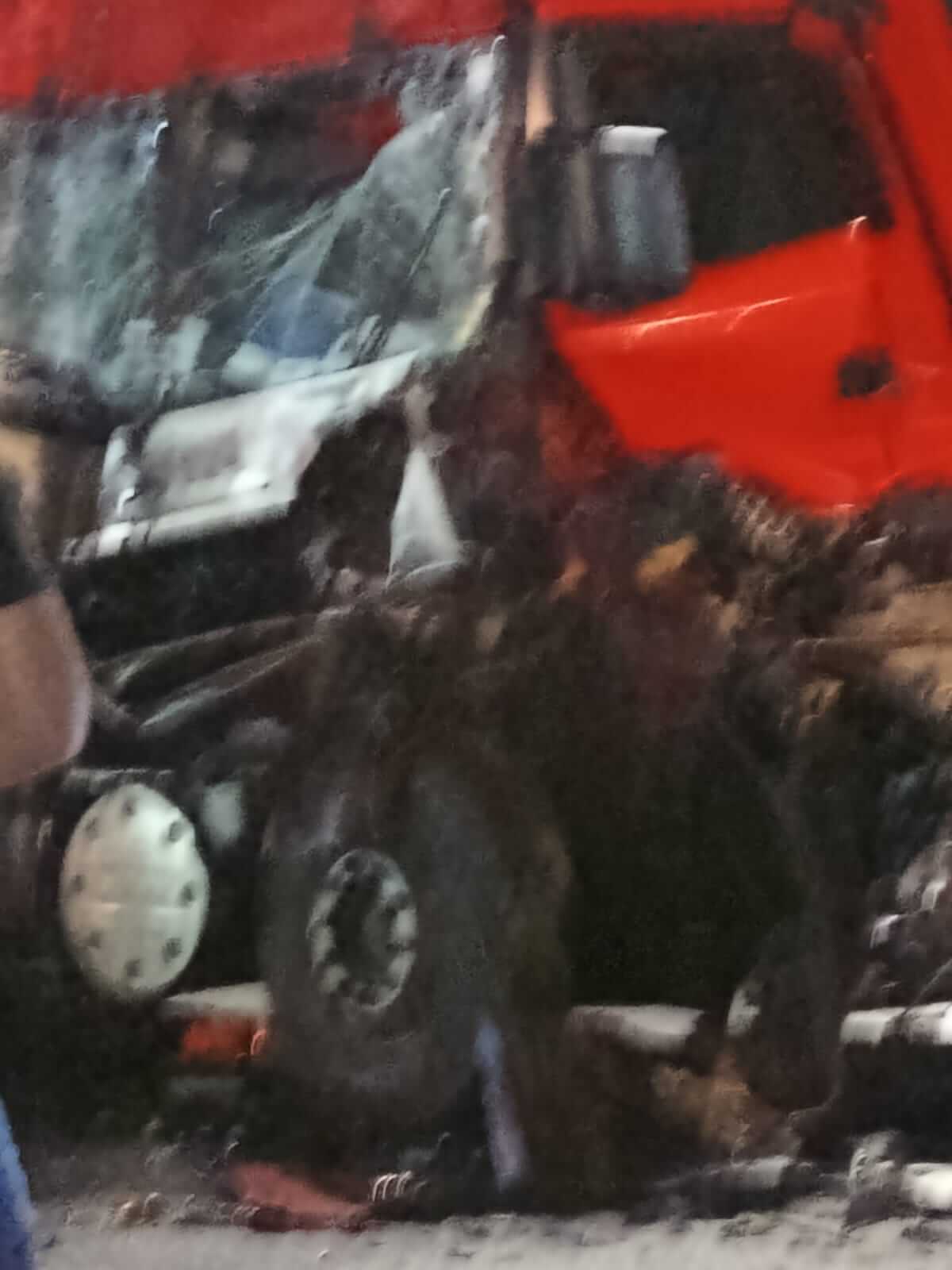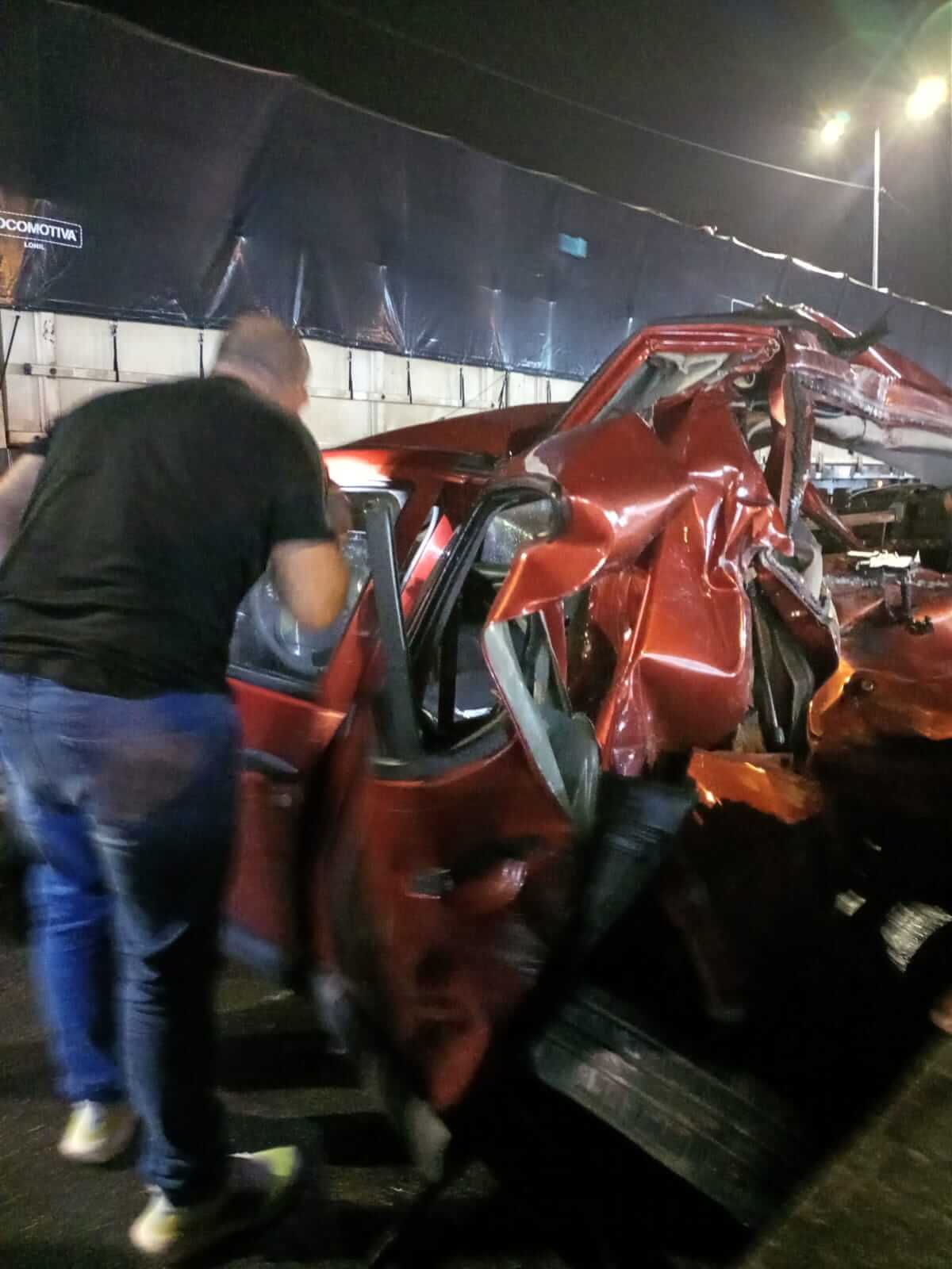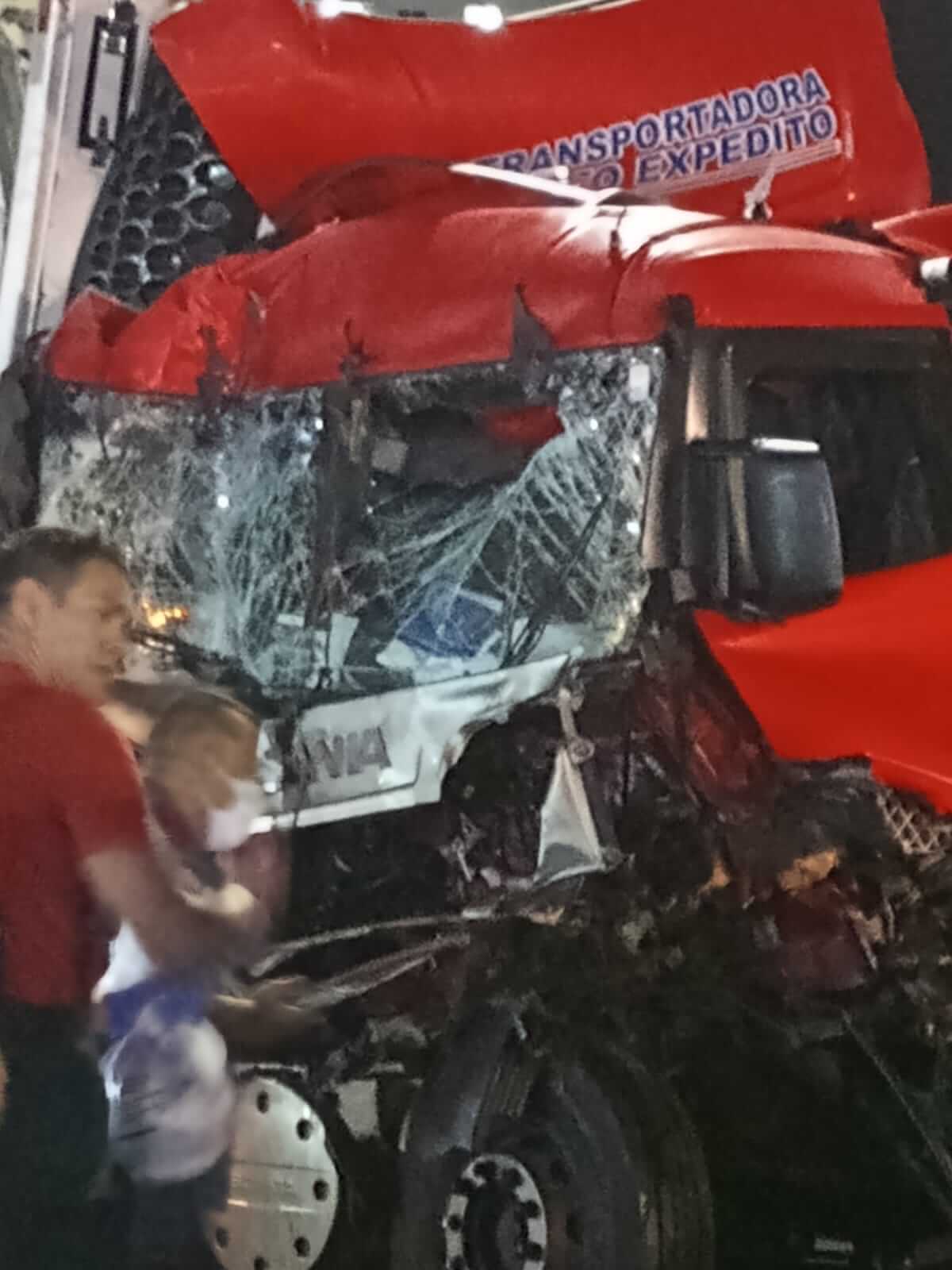Após o impacto o veículo foi lançado contra o guardrail e a carreta ainda colidiu em outro caminhão na frente.