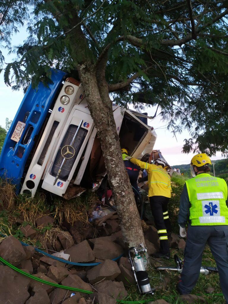 Um caminhoneiro de 28 anos ficou preso às ferragens após o veículo que ele conduzia tombar, na SC-160, em Campo Erê, no Oeste de Santa Catarina. O acidente ocorreu por volta das 05h15min, desta sexta-feira (14) e envolveu uma carreta com placas do Paraguai.