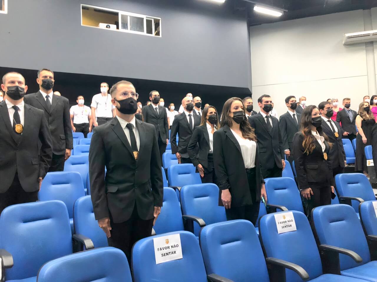 O delegado-geral da Polícia Civil, Marcos Flávio Ghizoni Júnior, destacou o momento vivido pela instituição em busca da recomposição do efetivo. "Vivemos um momento ímpar. De acordo com a nossa nova legislação, promulgada no final do ano passado e que está em vigência desde 1º de janeiro, o maior déficit de categorias da Polícia Civil é a classe de escrivão de polícia. Portanto, hoje damos início a uma permanente recomposição de efetivo com 18 novos escrivães que chegam aos nossos quadros", comemorou.