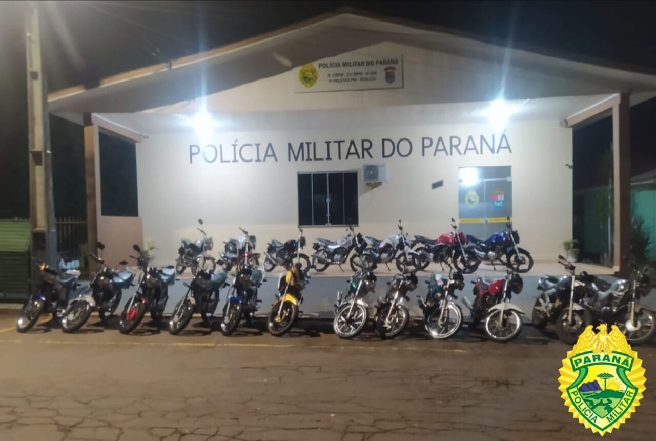 No final da tarde deste domingo, dia 03, por volta das 18h, após policiais militares em serviço no município de Realeza presenciarem inúmeras motocicletas cometendo infrações de trânsito no centro daquela cidade, principalmente decorrentes de alterações de características consistentes na retirada de supressores de ruído – escapamento aberto, vindo a causar perturbação do sossego público, bem como, parte dos condutores das motocicletas exibindo manobras perigosas em via pública, foi realizado bloqueio policial que resultou na apreensão de 19 (dezenove) motocicletas e na elaboração de aproximadamente 50 (cinquenta) autos de infração de trânsito.