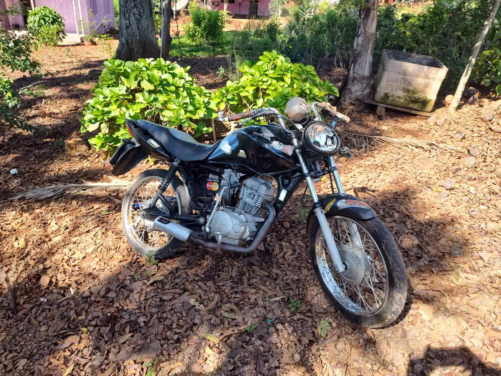 No local informado, com populares acenando e sinalizando a via com galhos, foi encontrando um masculino de 20 anos, consciente, orientado, em decúbito dorsal, apresentando ferimentos na face, membros superiores, suspeita de fratura em membro superior esquerdo e sangramento na boca, após queda da motocicleta Honda CG 125, cor preta.