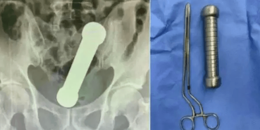 O haltere estava entre o reto e o intestino grosso do paciente que admitiu ter introduzido o peso de academia no corpo para obter satisfação sexual.