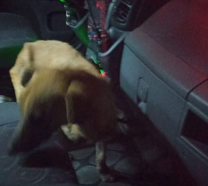 Um cachorro estava ao lado do homem, o que foi confirmado mais tarde que se tratava do seu tutor, ou seja, o responsável.