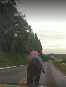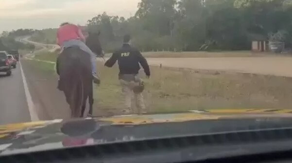 Em imagens divulgadas pela própria PRF, é possível ver o homem sobre o cavalo aparentando estar desacordado. Em outro vídeo, um policial aparece caminhando ao lado do homem sobre o cavalo, e segurando as rédeas do animal.