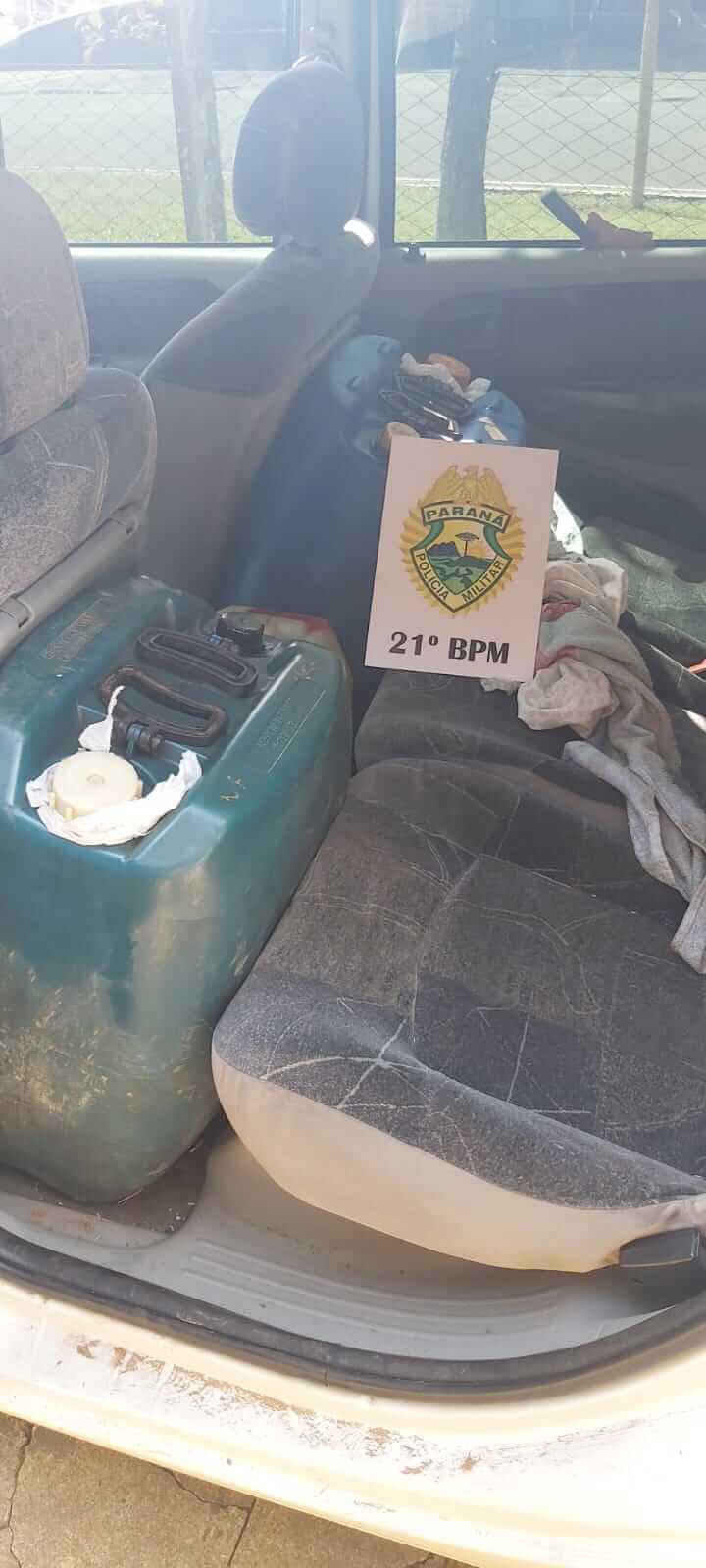 Imediatamente foi realizada a abordagem e identificado seu condutor, o qual transportava 100 litros de óleo diesel.
