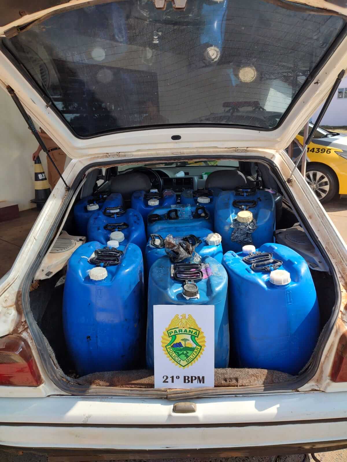 Em revista veicular foi constatado que o Escort estava carregado com 550 litros de óleo diesel.