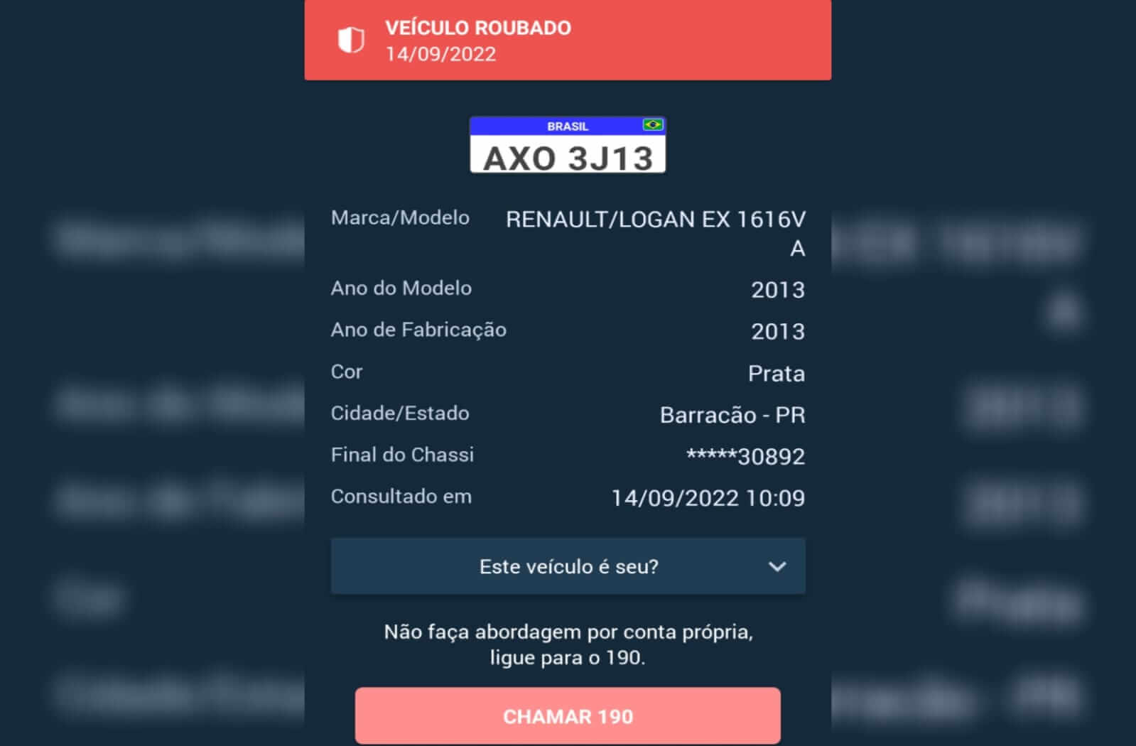 Informações que possam levar ao paradeiro do veículo devem ser repassadas à polícia.