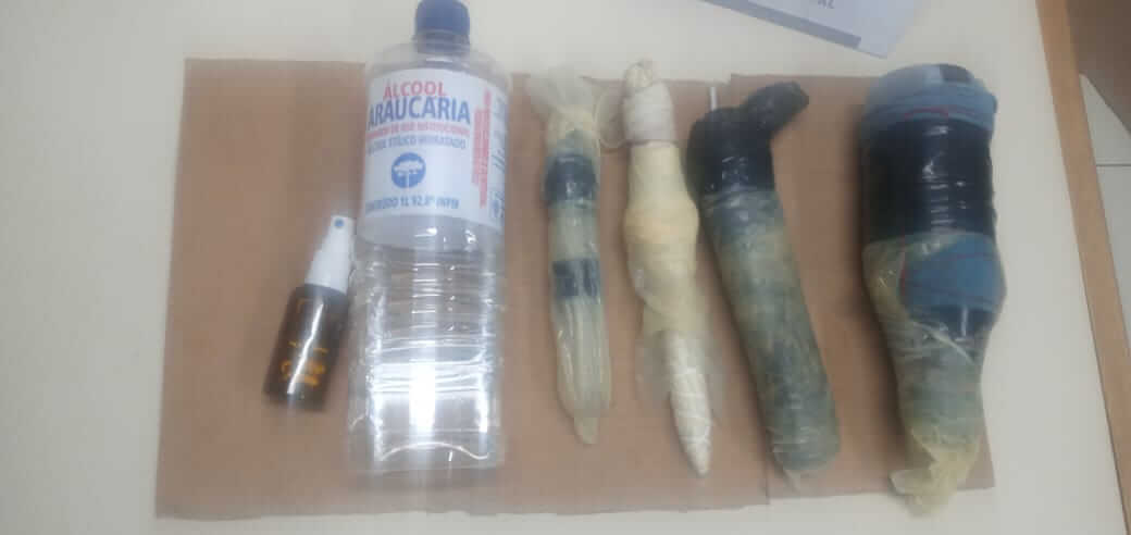 De posse das características do suspeito, os guardas realizaram buscas e lograram êxito em abordar e identificar o rapaz. Durante busca pessoal, nada de ilícito foi localizado com ele, no entanto, em sua mochila os guardas encontraram quatro masturbadores de fabricação artesanal; um vidro borrifador pequeno, com uma substância líquida desconhecida e uma garrafa de álcool de uso doméstico.