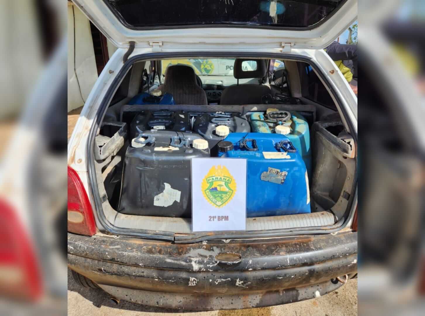 No interior do veículo os policiais localizaram 10 galões de óleo diesel, com 50 litros cada, totalizando 500 litros do combustível. Diante dos fatos, o veículo foi apreendido e após os procedimentos foi encaminhado à Receita Federal de Dionísio Cerqueira.