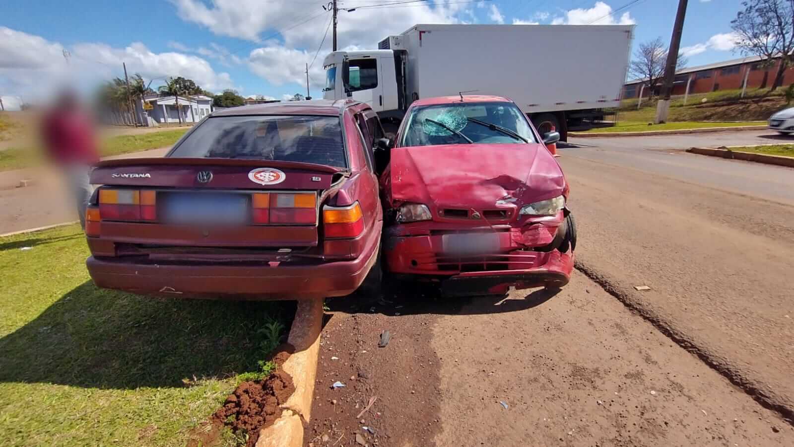 No local houve um acidente do tipo colisão lateral, envolvendo um VW Santana, com placas de Barracão/PR, conduzido por um idoso de 64 anos; e um Fiat Palio, de Dionísio Cerqueira/SC, ocupado por duas mulheres.