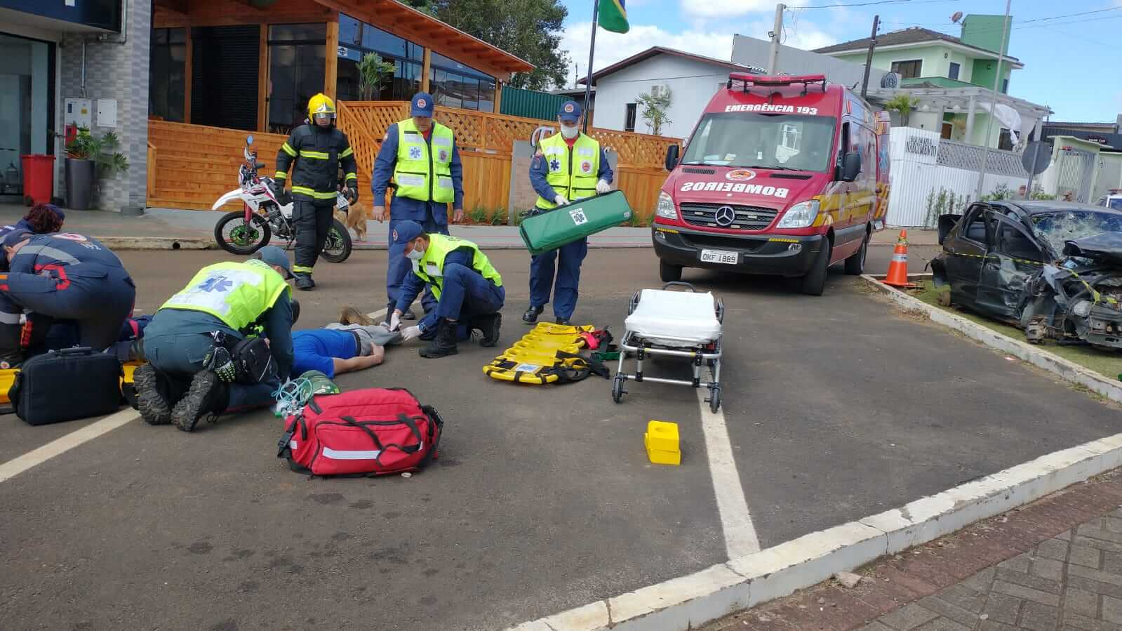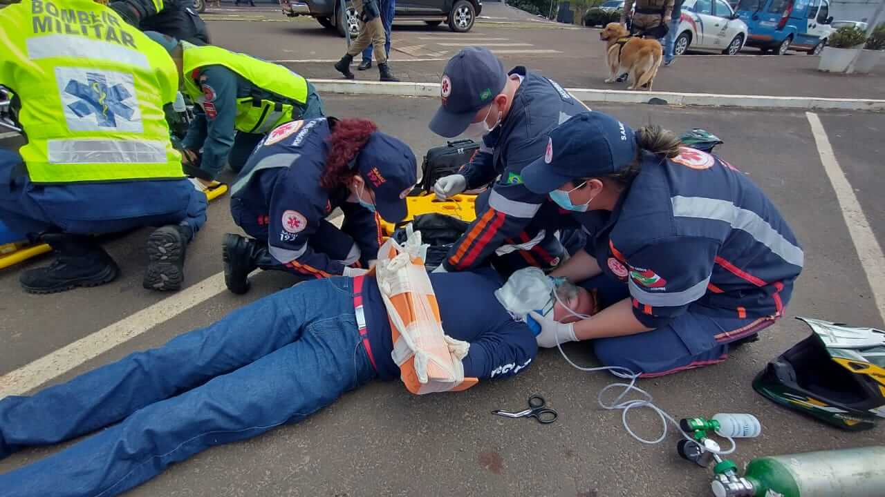 Nesse sentido as equipes da Polícia Militar, Corpo de Bombeiros e Samu, de Dionísio Cerqueira, promoveram na tarde de quinta-feira, 22, um simulado de acidente, na Av. Sete de Setembro, no centro das cidades gêmeas, que ficou bloqueada por cerca de 20 minutos, para a realização da ação.