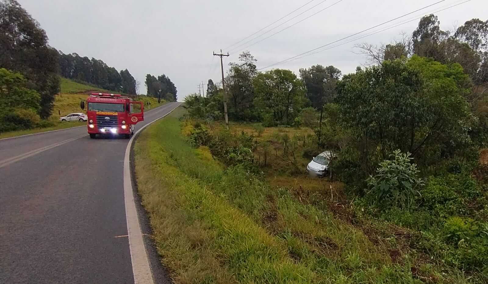 Um acidente do tipo saída de pista mobilizou as equipes do Corpo de Bombeiros e Samu, no início da manhã de hoje, segunda-feira (26), na rodovia BR 163, em Bom Jesus do Sul. A ocorrência foi registrada por volta das 07h55, na Linha São Paulo, sentido à Santo Antonio do Sudoeste.