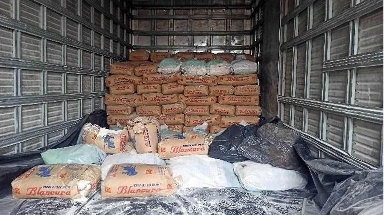 Durante revista veicular, foi constatado que o caminhão estava carregado com 211 sacas de farinha de origem argentina, de 25 kg cada uma.