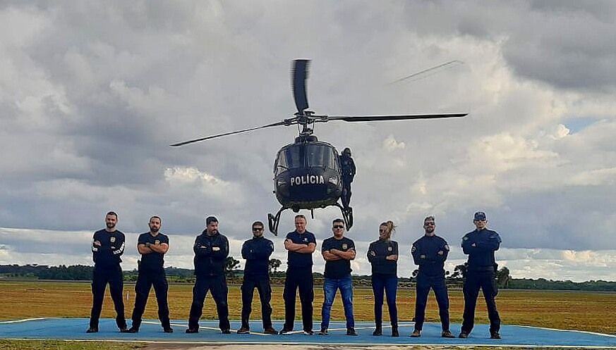 Na sexta-feira (21), a Polícia Civil através do Serviço Aeropolicial de Fronteira (SAER-FRON), realizou o treinamento de quatro Operadores da Receita Federal que atuam em Dionísio Cerqueira e Joaçaba, e quatro Policiais Civis da Delegacia Regional de Chapecó.