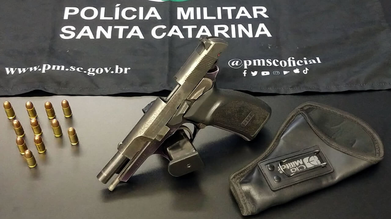 Ao chegar no local foi avistado e abordado o suspeito, um homem de 37 anos. Após a identificação foi procedida a busca pessoal e localizada uma pistola marca Bersa de fabricação Argentina, calibre 9mm, que estava carregada com onze munições.