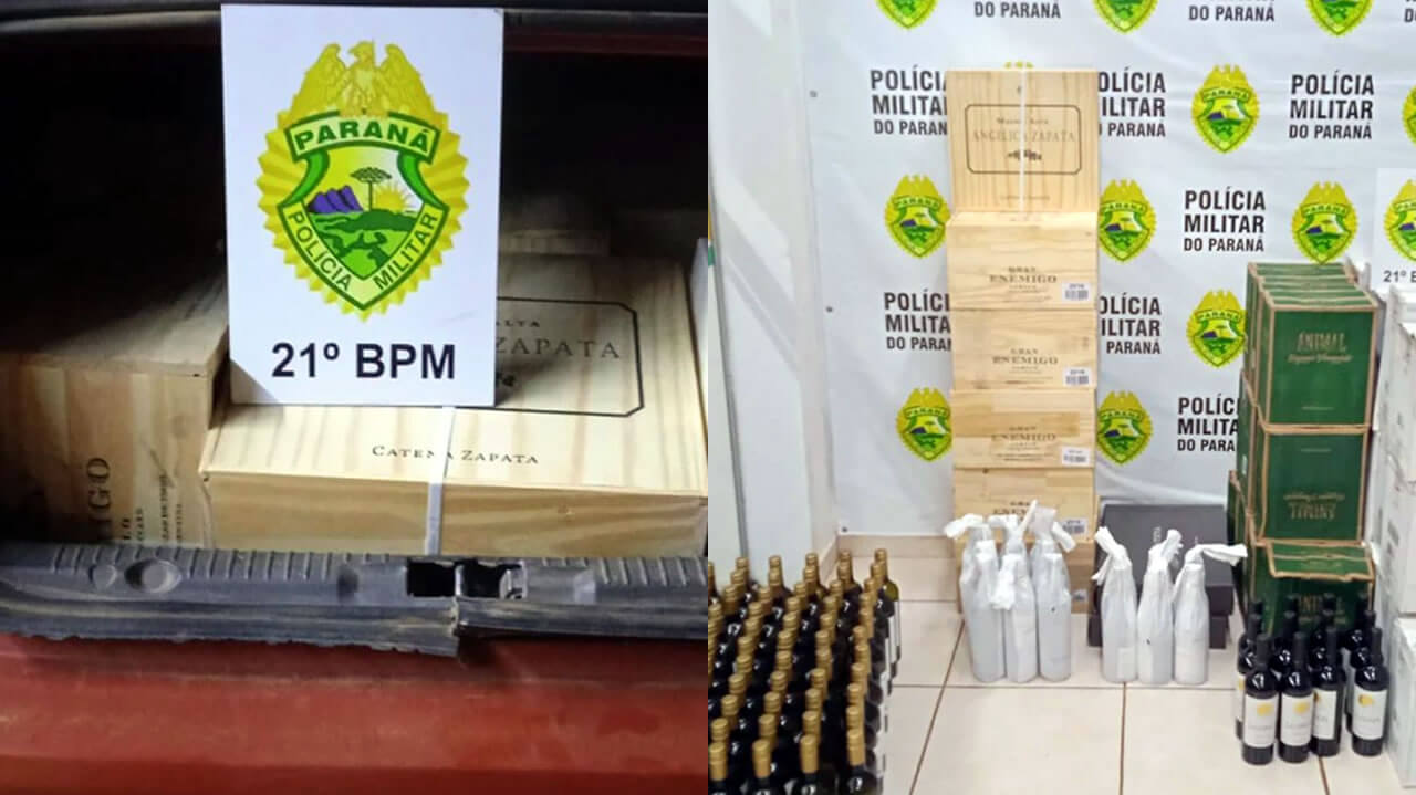 Diante dos fatos o veículo e as 59 caixas de vinho foram encaminhados à Receita Federal de Santo Antônio do Sudoeste.