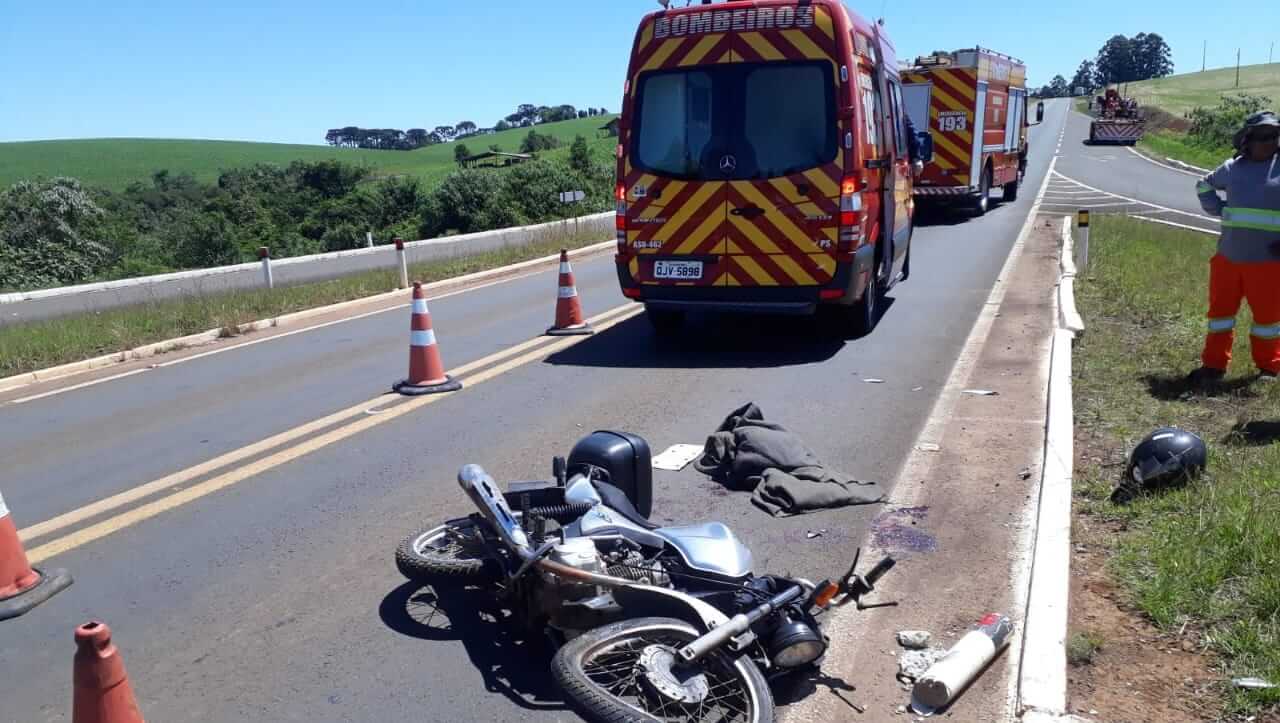 Ao chegar ao local os socorristas constataram a ocorrência sendo que se tratava de uma colisão envolvendo um caminhão Mercedes Benz, 1718, com placas de Curitiba/PR e uma motocicleta CG Titan 125 com placas Mercosul.