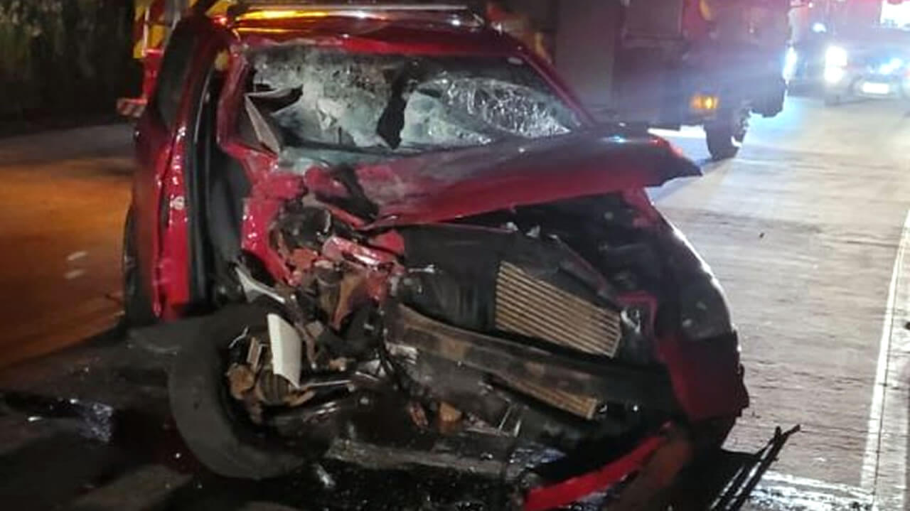 Um grave acidente foi registrado na noite de sábado (19), na rodovia BR 163, na entrada da gruta em Guarujá do Sul.