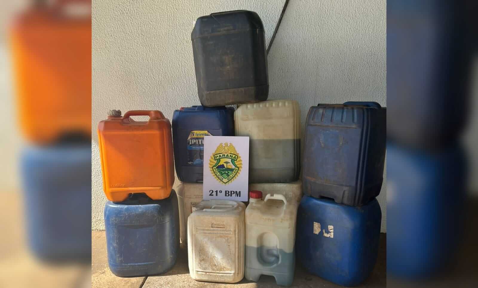 PM de Barracão apreende galões de combustível contrabandeado