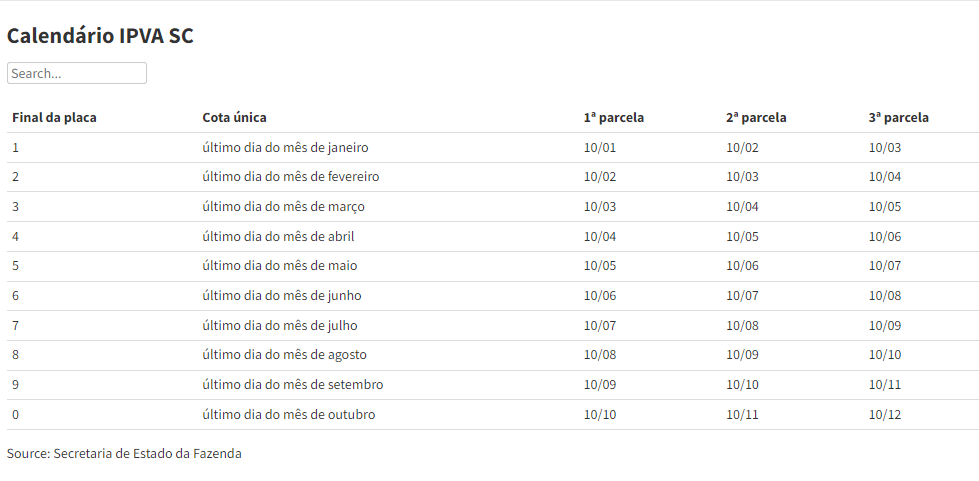A ordem de pagamento é definida pelo número da placa. Os primeiros a pagar são os donos de veículos com placa de final 1. Quem optar por parcelar o imposto deve fazer o primeiro pagamento do boleto até 10 de janeiro. Já a cota única tem vencimento no dia 31 de janeiro. Não há desconto para quem optar pelo pagamento em uma só vez ou adiantar parcelas.
