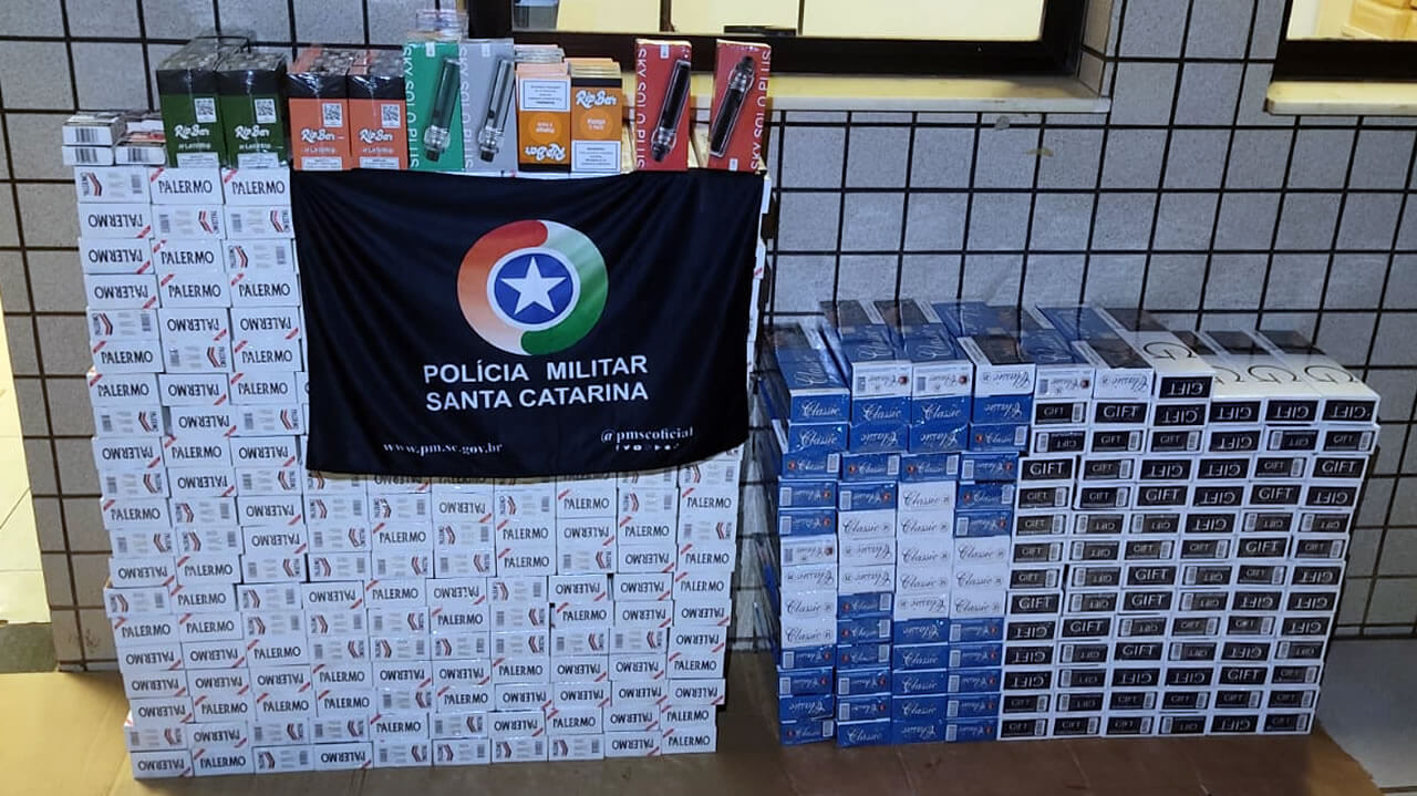 Pelo 3º dia seguido, PM apreende cigarros em Dionísio Cerqueira; dois foram presos