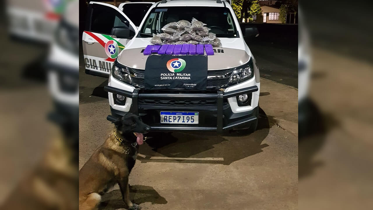 Foi utilizado o cão de faro Max, que sinalizou a droga em duas malas no bagageiro. Dentro das bolsas estavam 5,978 kg de maconha prensada em tabletes e 5,682 kg de maconha skunk.