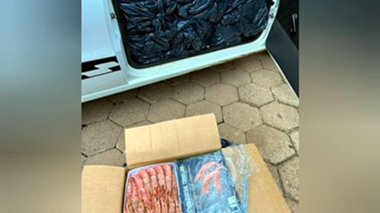 Durante verificação no veículo, foi constatado que estava carregado com 47 caixas de camarão totalizando cerca de 700 quilos, trazidos ilegalmente da Argentina.