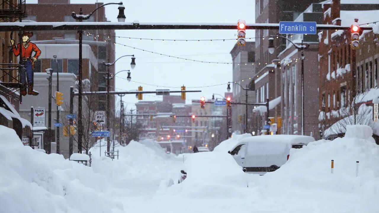 As ruas de Buffalo, segunda maior cidade do estado de Nova York, ainda estavam em grande parte bloqueadas hoje, devido à neve.