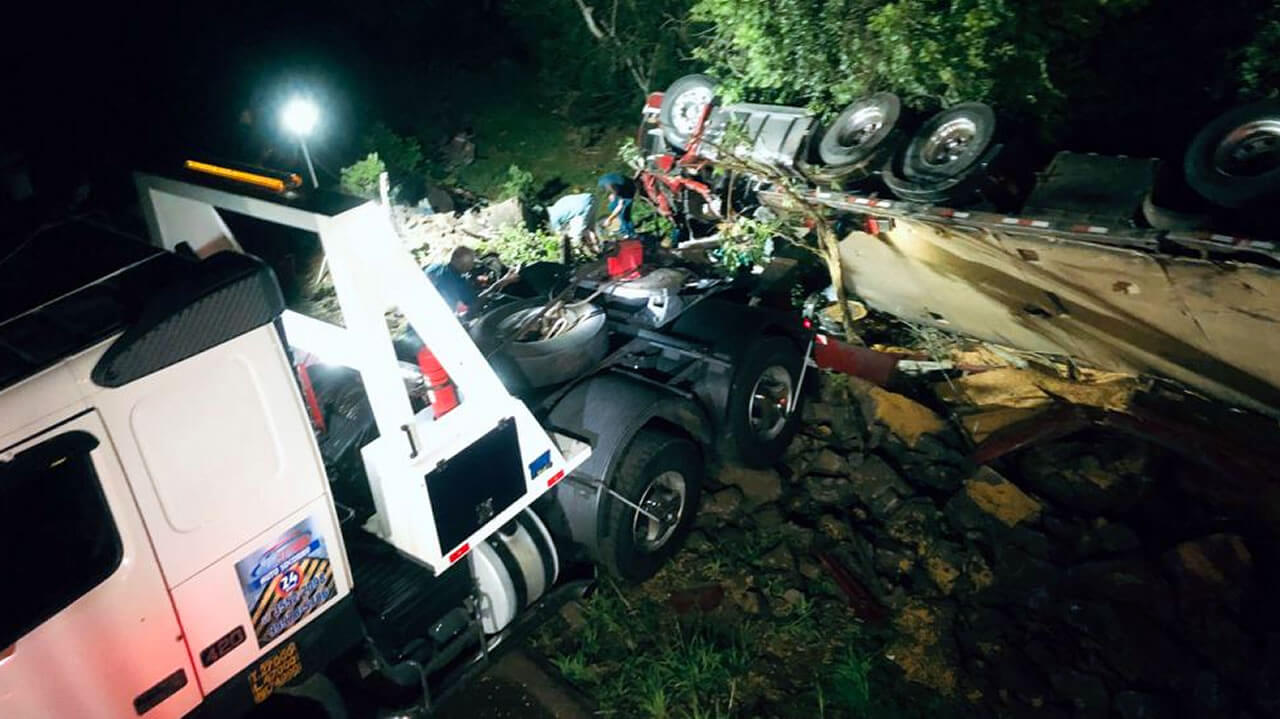 O acidente envolveu um caminhão Volvo FH 540, vermelho, com placas de Pérola do Oeste, conduzido por Gilvan Amaro Cortes, de 45 anos, que não resistiu aos ferimentos e entrou em óbito no local.