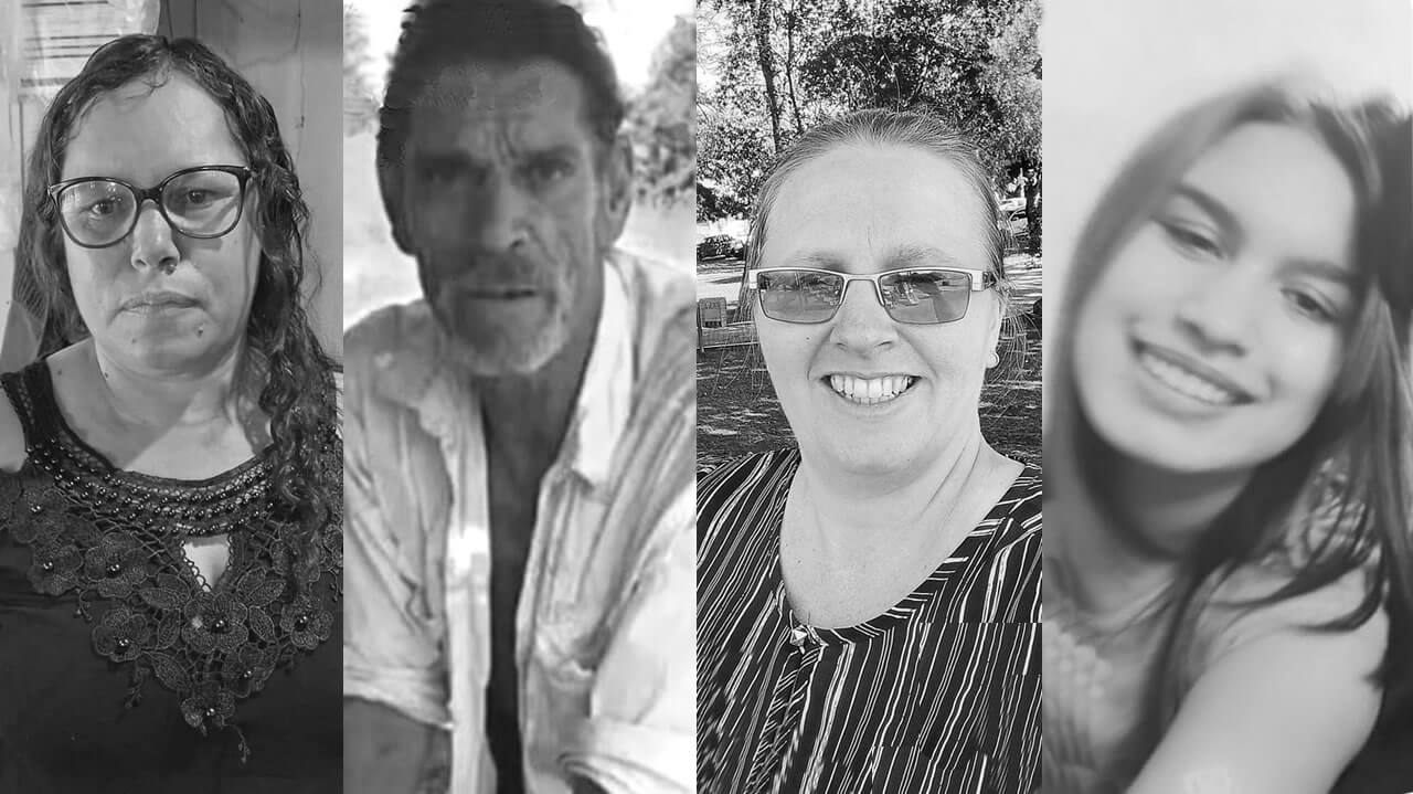 As vítimas foram identificadas como sendo Ana Claudia Schultz, de 35 anos; Emídia Santos de 53 anos; Delfino Carlos dos Santos de 63; e Marinalva dos Santos de 18, filha de Delfino e Emidia.