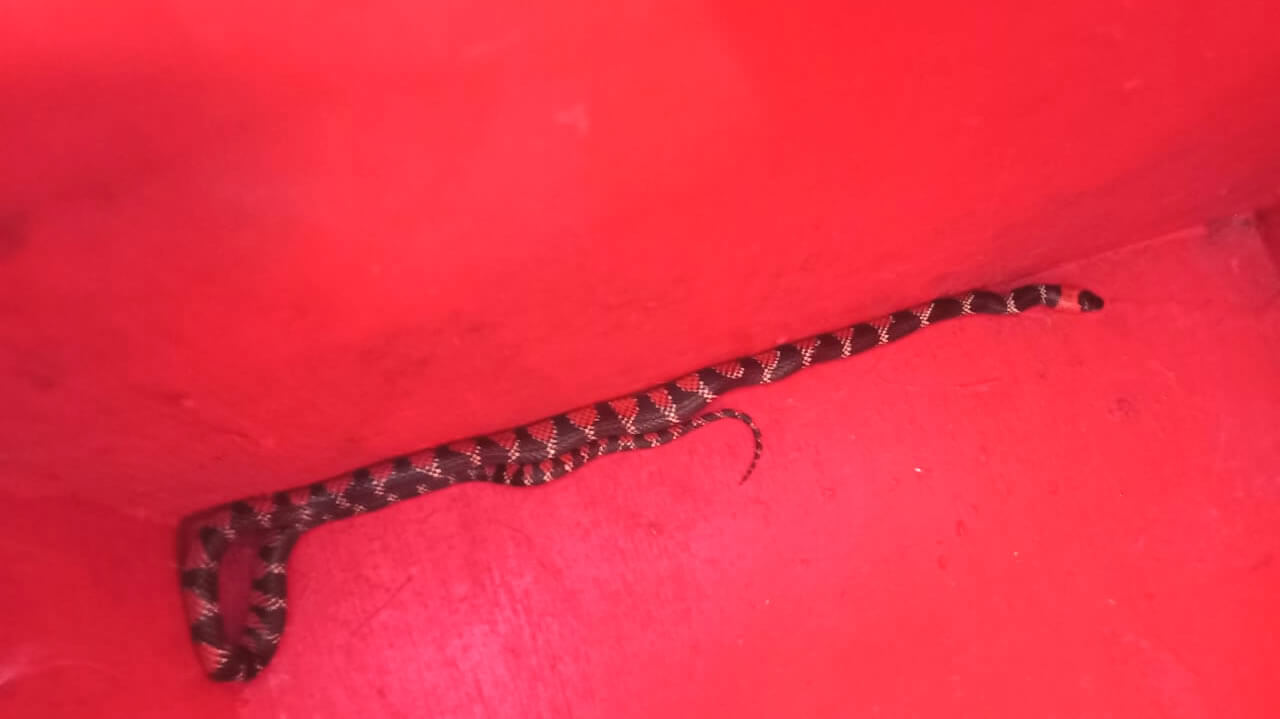 Foi constatado que se tratava de uma cobra Coral que foi capturada e logo depois devolvida ao seu habitat natural.
