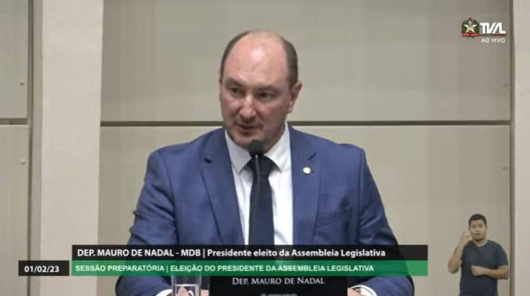 Logo após a posse, nesta manhã aconteceu também a eleição para presidência da Alesc. Mauro de Nadal (MDB) teve 38 votos, dos 40 deputados eleitos. “A política exige trabalho árduo. Vamos construir um trabalho justo para todos os catarinenses”, afirmou ele em discurso.
