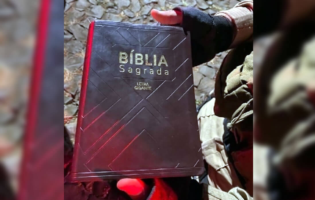 No momento em que o casal percebeu a presença policial, a mulher saiu da residência pedindo ajuda. Os policiais solicitaram que o homem largasse o facão, porém ele acertou o rosto da mulher com a bíblia.