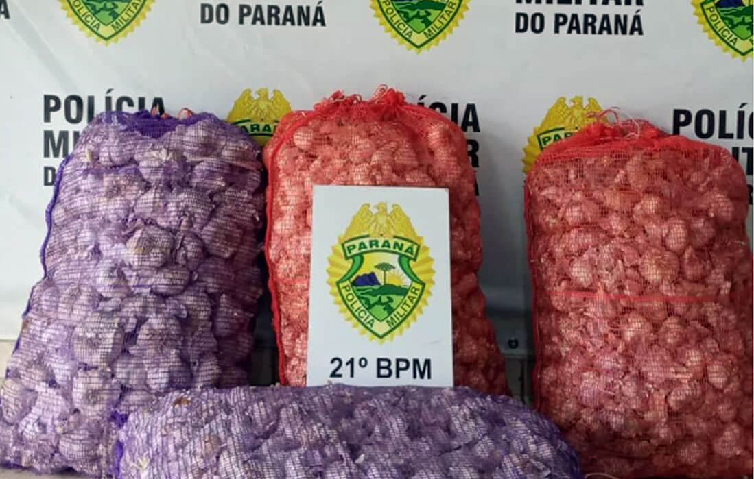 Santo Antonio do Sudoeste - PM apreende carga de alho descaminhado da Argentina