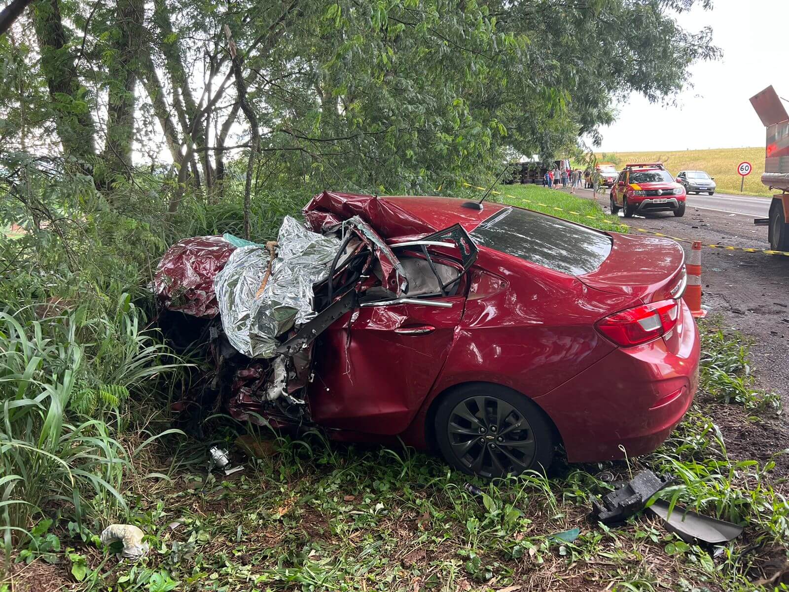 Acidente ocorreu por volta das 16h40 desta quinta-feira, envolvendo um GM Cruze, emplacado em Santo Antonio do Sudoeste e um caminhão