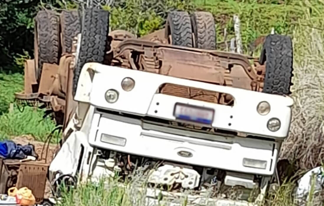 No local houve um acidente do tipo saída de pista seguido de tombamento de um caminhão leiteiro Ford Cargo, emplacado em Curitiba/PR.