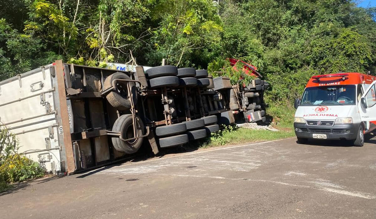 Segundo a Polícia Rodoviária Estadual, o caminhão estava carregado com 25 toneladas de ração para peixe que seria levada para o Chile, sendo que ao chegar ao local, o motorista perdeu o controle saiu da pista e tombou.