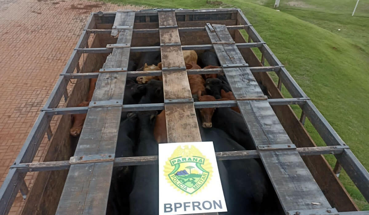 Devido à suspeita foi realizada a abordagem, e constatado estar carregado com 22 cabeças de gado sem documentação.