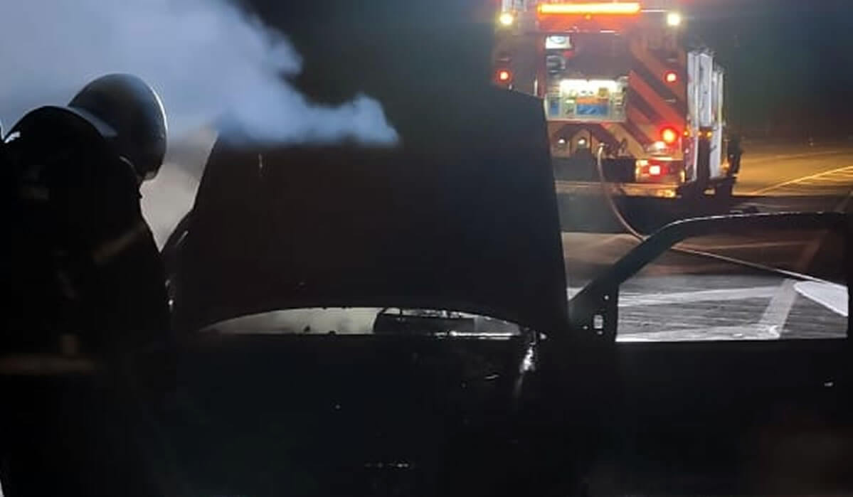 Conforme os bombeiros, o veículo foi tomado pelas chamas e ficou completamente destruído.