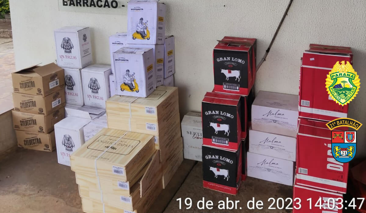 Ao realizar vistoria no veículo, foi constatado que estava carregado várias caixas de vinho de origem argentina, sem o desembaraço aduaneiro.