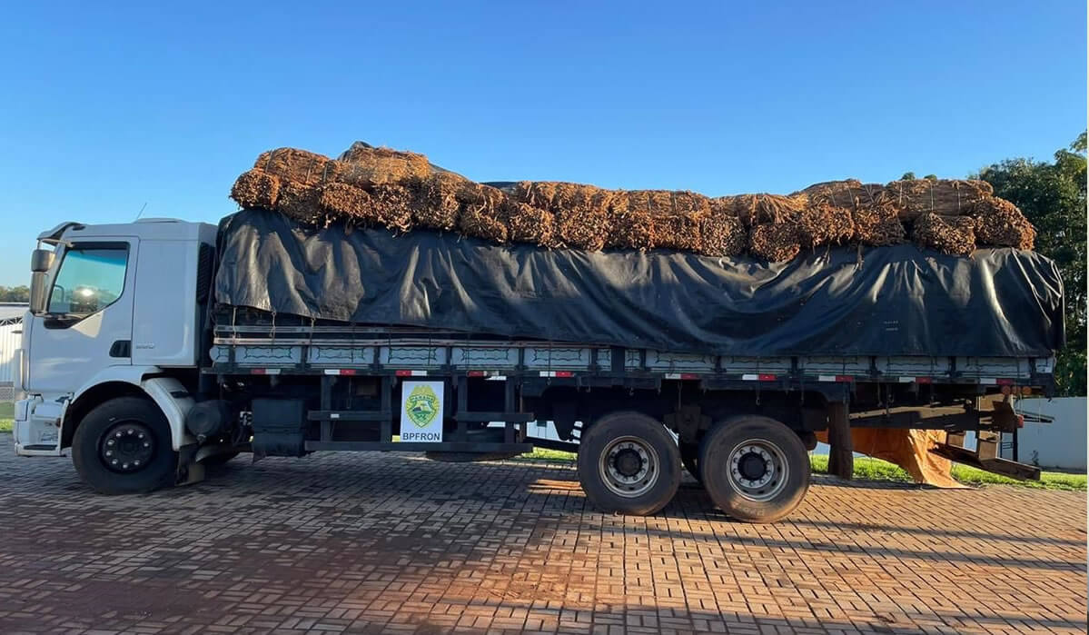 Caminhão carregado com 15 toneladas de fumo sem procedência é apreendido em Santo Antonio do Sudoeste