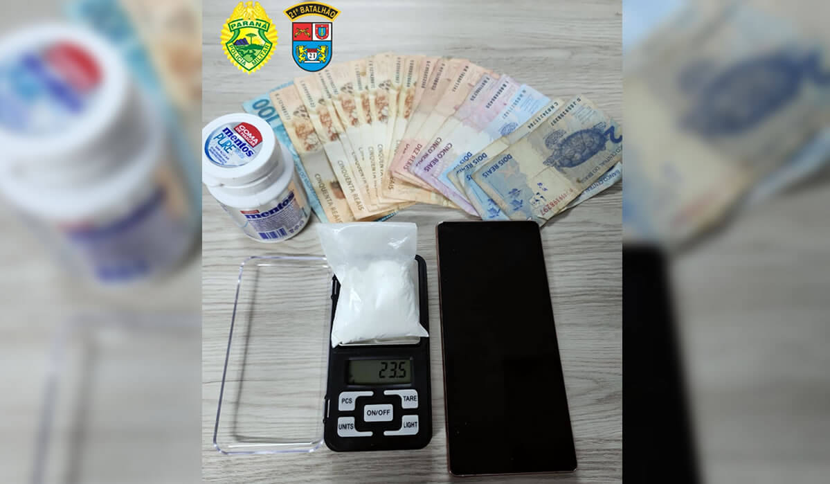 Diante dos fatos, foi dada voz de prisão ao abordado, e posteriormente encaminhado à 58° Delegacia de Polícia de Santo Antônio do Sudoeste, juntamente com a droga, dinheiro e celular apreendido, para os procedimentos cabíveis.