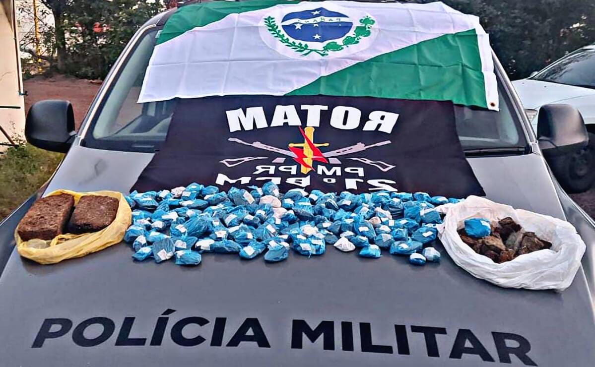 Na tarde desta sexta-feira (12), equipes Rotam e Canil, realizaram a apreensão de uma grande quantidade de drogas em Barracão. Conforme relatório, a equipe recebeu a informação de que em uma residência no Bairro Industrial, funcionaria um ponto de venda de drogas.