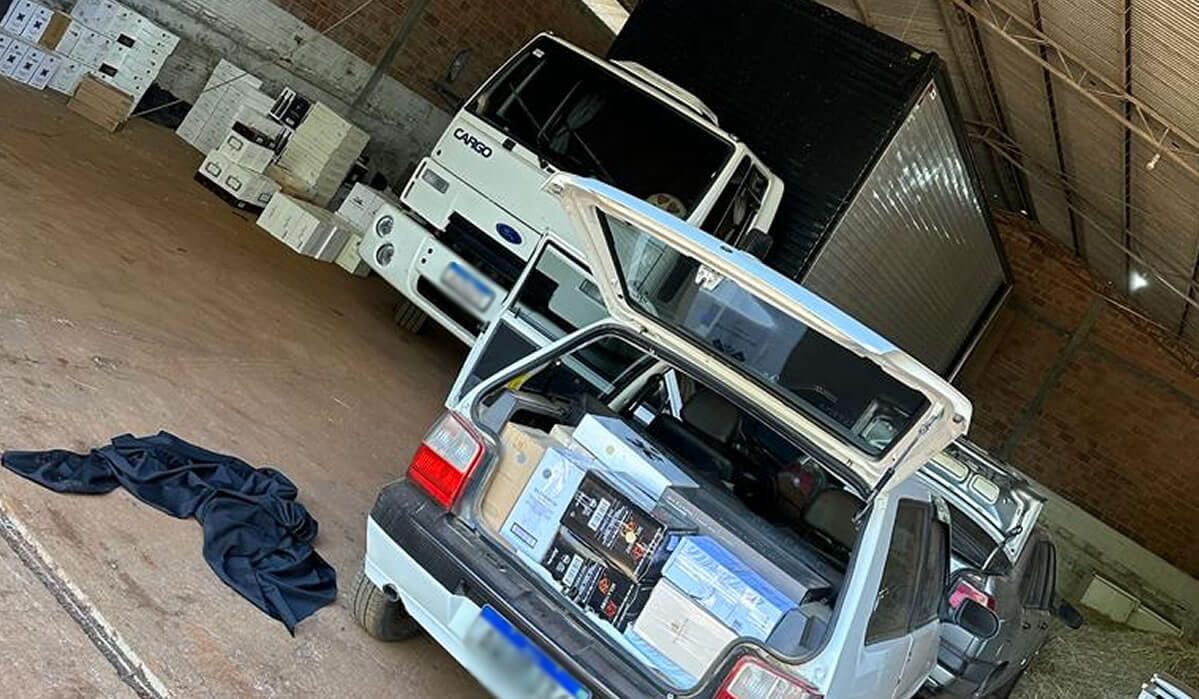 Além das bebidas, também foram apreendidos cinco carros e um caminhão utilizados pelos suspeitos para o descaminho dos produtos.