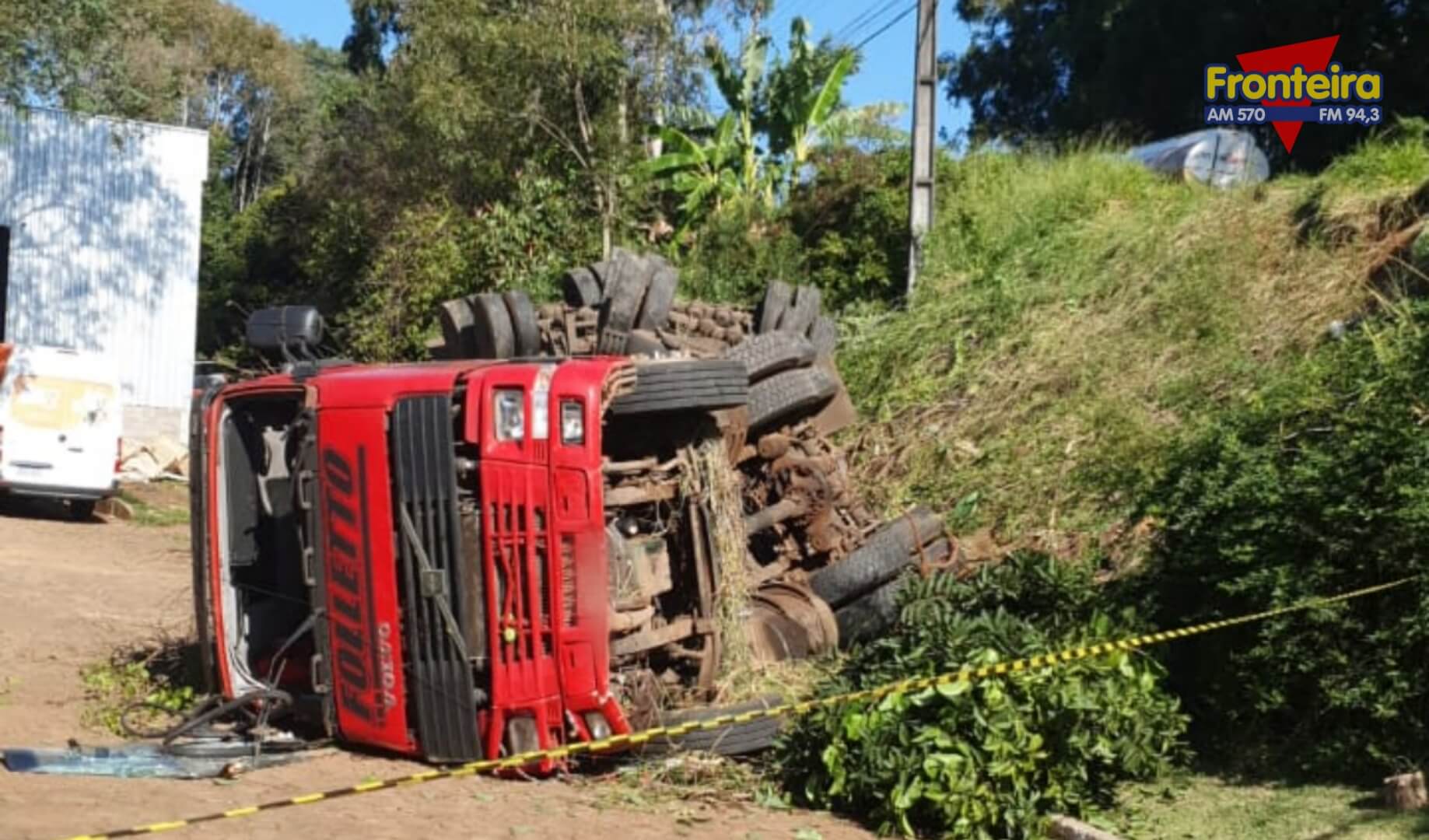 Vale destacar que o caminhão acabou saindo da rodovia e tombando no pátio de uma empresa.