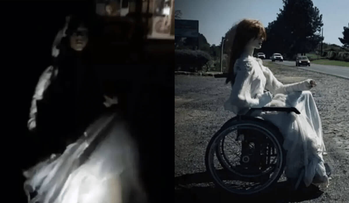 A figura de uma mulher pálida, vestida de noiva, com cabelos avermelhados e sentada em uma cadeira de rodas tem chamado atenção de motoristas que passam pelo quilômetro 376 da PR-151, entre Palmeira e Ponta Grossa/PR. As informações são do RIC Mais.
