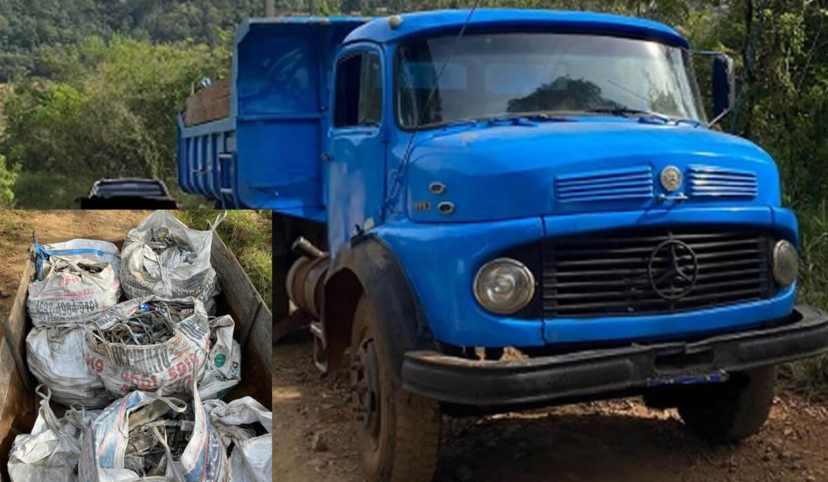 Em revista no veículo foi constatado que estava carregado com aproximadamente seis toneladas de canos de chumbo cortados, oriundos do país vizinho, que seriam destinados para reciclagem.