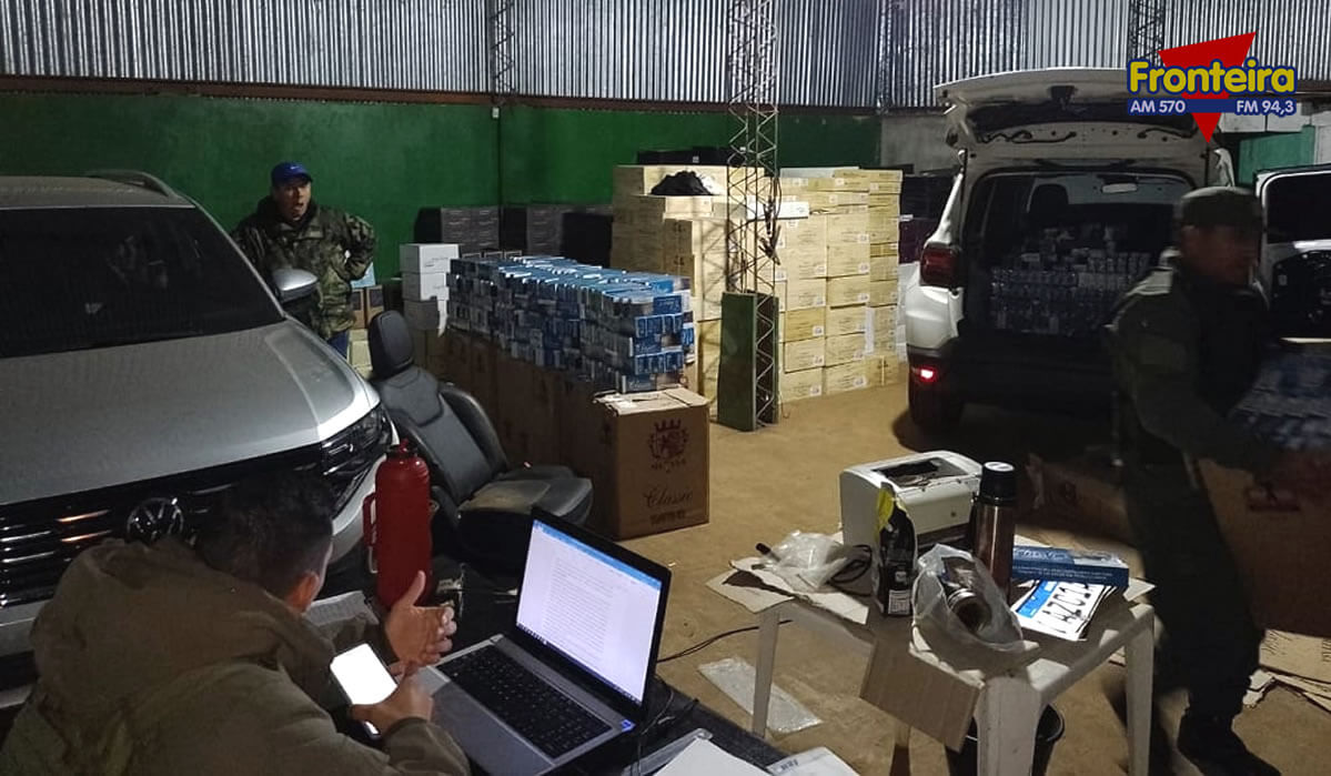 Dessa maneira, as equipes conseguiram adentrar ao depósito em questão, onde foram localizadas e apreendidas 3.112 garrafas de vinho argentino, 49.500 maços de cigarros paraguaios, quatro placas de veículos, e três veículos (um argentino e dois brasileiros) equipados com rádio de comunicação de alta frequência, que possuem registro de roubo em ambos os países.
